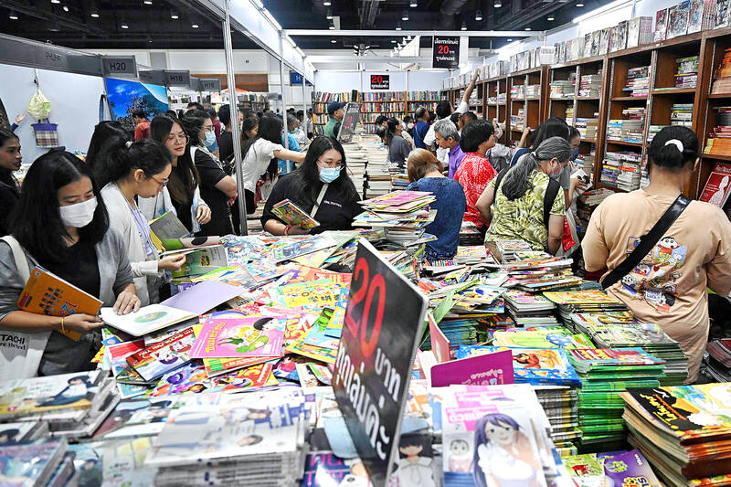 Readers browse the offerings at Book Expo Thailand 2024, the country’s largest book fair, at the Queen Sirikit National Convention Center in Bangkok yesterday.
