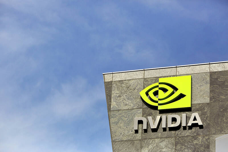 Nvidia’s shares hit a record high on Tuesday, building on a rally from last week when Taiwan Semiconductor Manufacturing Co (台積電), the world’s largest contract chipmaker, posted a 54 percent jump in quarterly profit driven by soaring demand for chips used in AI.