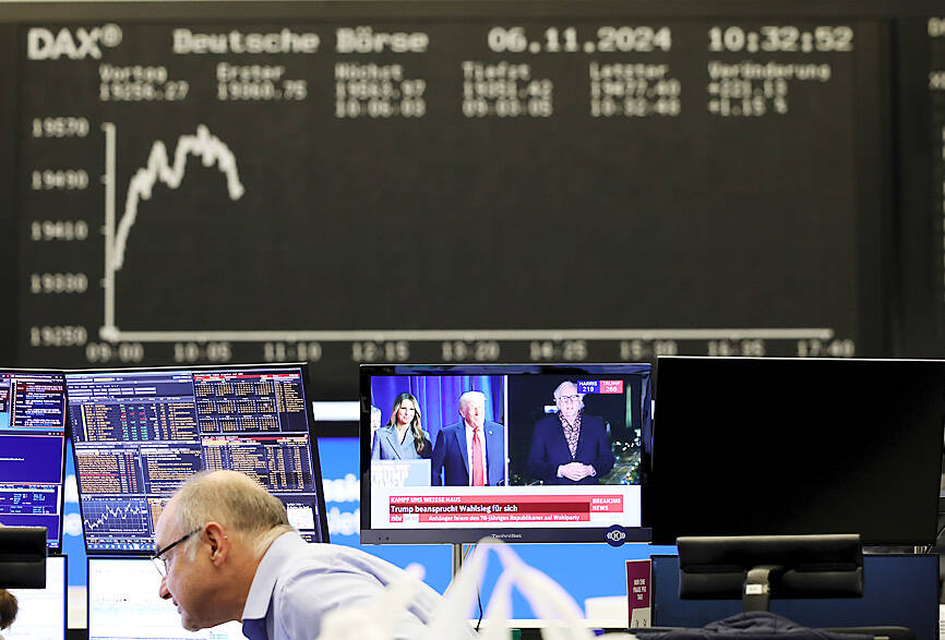 The US dollar surged and bitcoin hit a record high yesterday before former US president Donald Trump claimed victory in the US election, with traders ramping up bets on fresh tax cuts, tariffs and rising inflation.