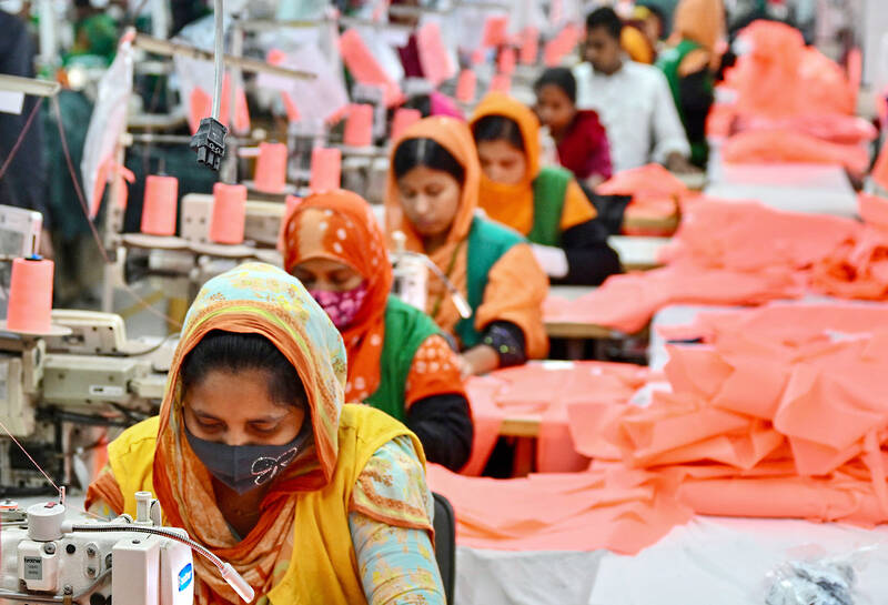 In a vast Bangladeshi factory hall thrumming with sewing machines, garment workers churn out seemingly endless pairs of mountain hiking trousers for customers in Europe and North America.