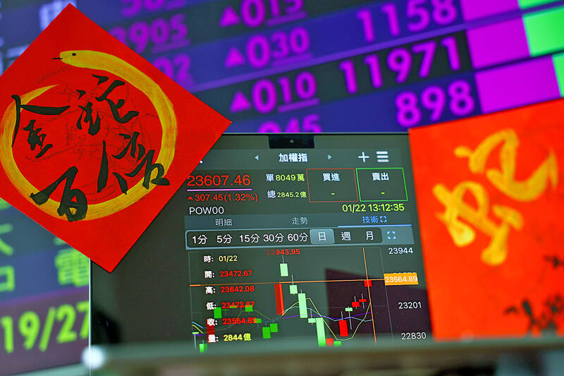 During the Year of the Dragon, the TAIEX rose 5,429.34 points, the highest ever, while the 30 percent increase in the year was the second-highest behind only a 30.84 percent gain in the Year of the Rat from Jan. 25, 2020, to Feb. 11, 2021, Taiwan Stock Exchange data showed.