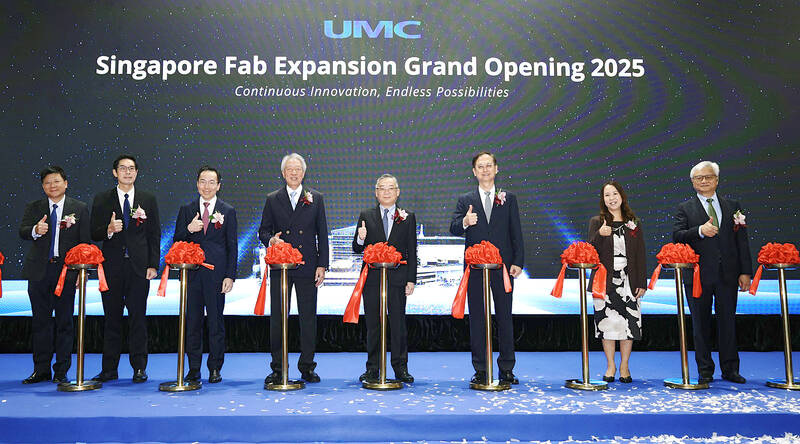 United Microelectronics Corp (UMC, 聯電), the world’s No. 4 contract chipmaker, yesterday launched a new US$5 billion 12-inch chip factory in Singapore as part of its latest effort to diversify its manufacturing footprint amid growing geopolitical risks.