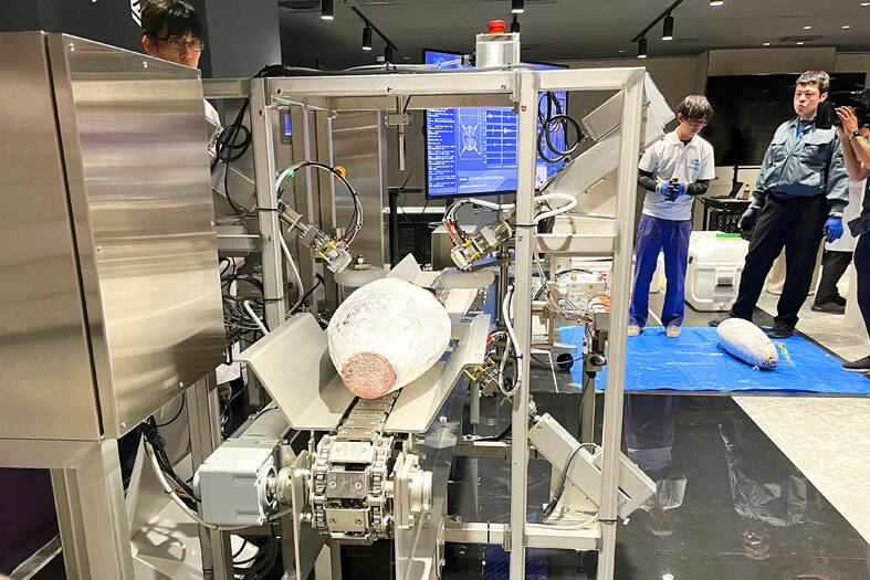 Fish-processing outfits and fishing organizations are the likely buyers. The machine is set to go on sale in June for about ¥30 million (US$209,000) each, at first in Japan but expanding to the US and other places later. They would also work on upgrades to test for freshness, firmness and other characteristics of tuna and other fish varieties.