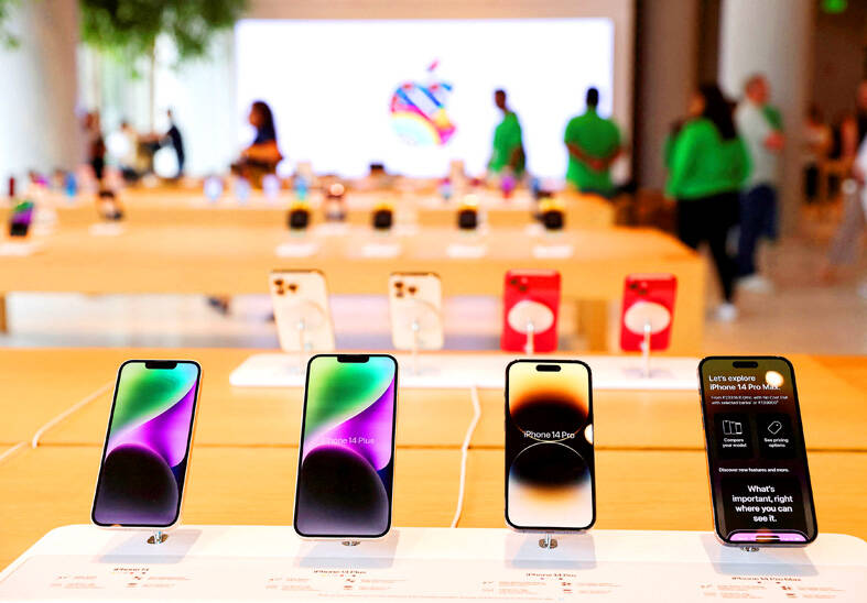 The ramp-up suggests the iPhone maker and its suppliers are accelerating a pivot to India from China. The bulk of India-made iPhones are assembled at Foxconn Technology Group’s (富士康) factory in southern India. Tata Group’s electronics manufacturing arm, which bought Wistron Corp (緯創) and controls Pegatron Corp’s (和碩) operations, is also a key supplier.