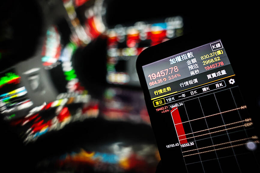 Shares in Taiwan recorded their second-highest daily point gain in history yesterday amid the possible easing of trade tensions between the US and China, and after US President Donald Trump indicated that he would not dismiss US Federal Reserve Chair Jerome Powell.