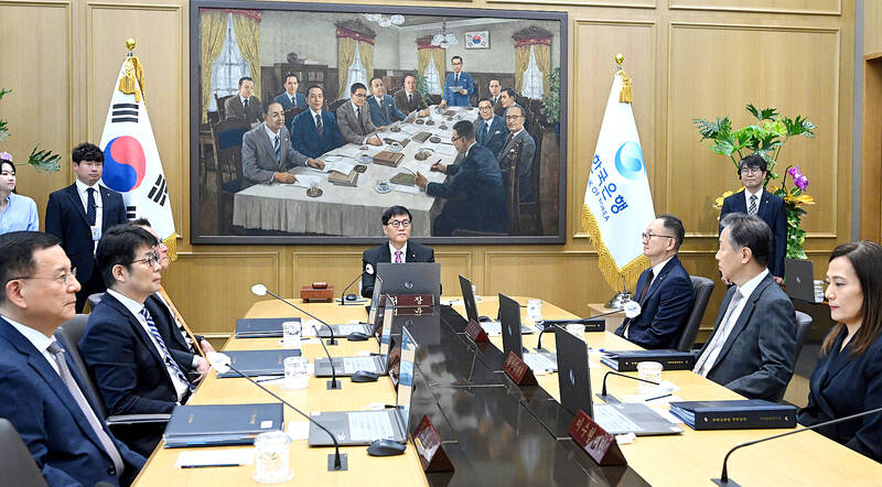 The Bank of Korea (BOK) yesterday flagged the likelihood of more interest rate cuts to come after trimming borrowing costs and slashing this year’s growth forecast as US President Donald Trump’s tariffs and political turmoil weigh on the South Korean economy.