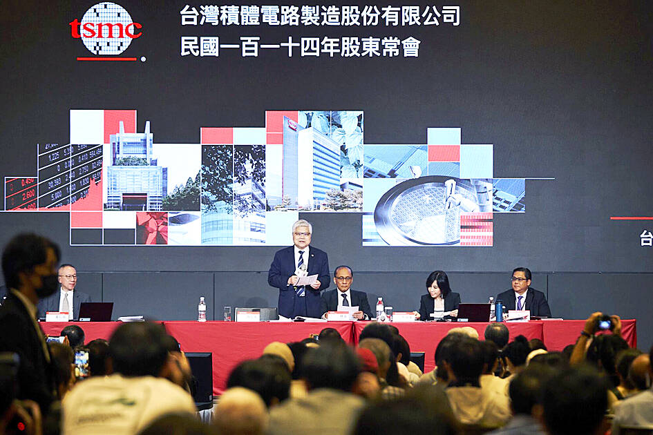 “The impact of tariffs would be indirect, as the custom tax is the importers’ responsibility, not the exporters,” TSMC chairman and chief executive officer C.C. Wei (魏哲家) said at the chipmaker’s annual shareholders’ meeting in Hsinchu City.