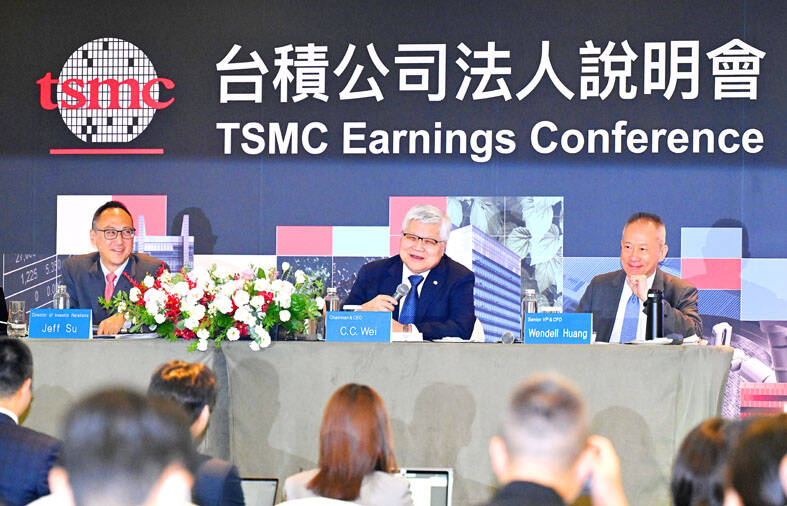 “The demand for AI is getting stronger and stronger, if you pay attention to what the US$4 trillion company’s CEO said,” TSMC chairman and chief executive officer C.C. Wei (魏哲家) told an investors’ conference in Taipei.