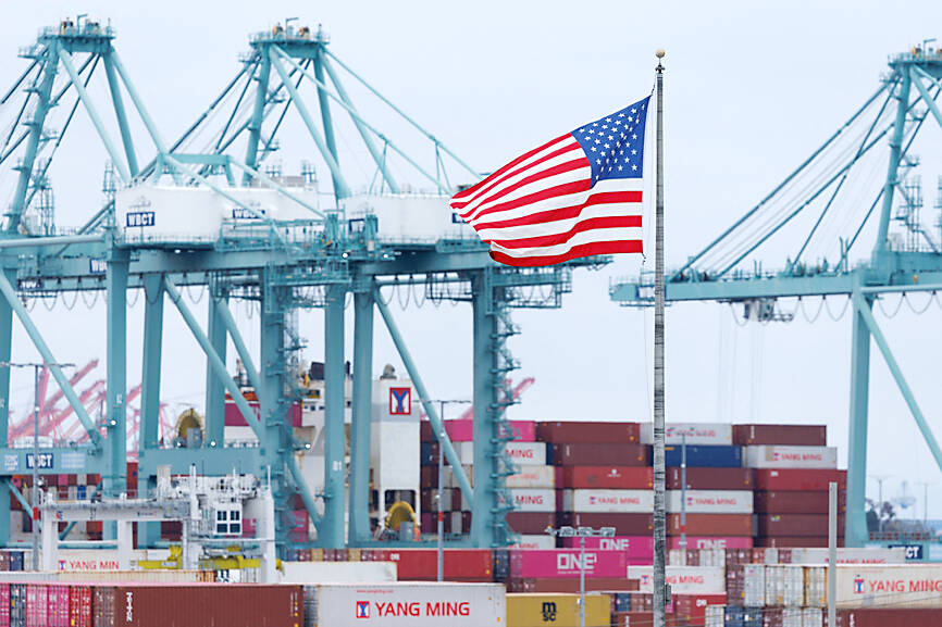 “Trade flows via third countries are substantial and have helped cushion the blow from existing US tariffs,” Bloomberg Economics analysts Chang Shu (舒暢), Rana Sajedi and David Qu (曲天石) wrote in a research note yesterday. “Tighter controls on these shipments would increase the damage from the trade war and could erode growth opportunities in the long term.”