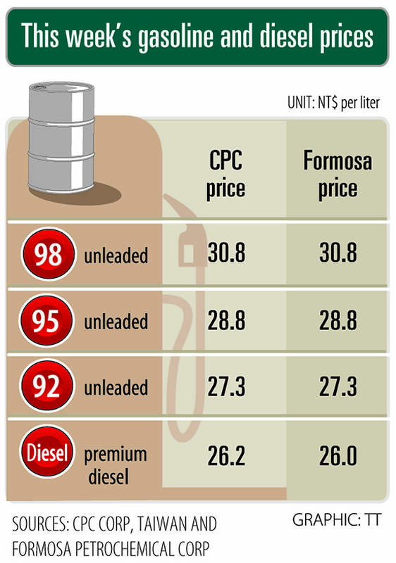 The price of premium diesel is to rise to NT$26.2 per liter at CPC stations and NT$26 at Formosa pumps, they said.