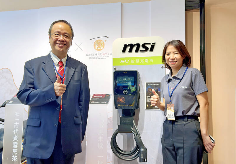 The company is partnering with Taiwanese automakers to sell cobranded charging piles in the domestic market, MSI electric vehicle supply equipment business division marketing manager Tina Chang (張婷然) said on the sidelines of an event in Taipei.