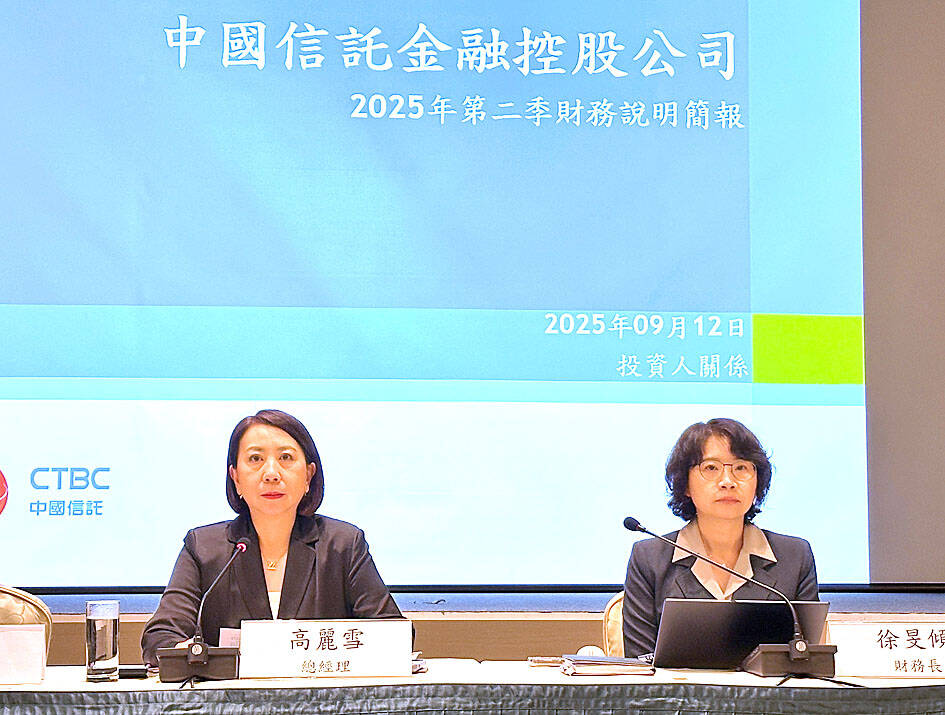 CTBC Financial president and spokeswoman Rachael Kao (高麗雪) expressed cautious views for the second half, highlighting global trade tensions, tariff risks and equity market volatility as potential headwinds.