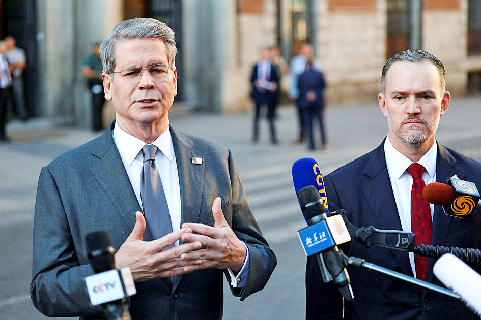 US and Chinese officials, led by Chinese Vice Premier He Lifeng (何立峰), concluded a first day of talks in Madrid on Sunday on their strained trade ties, a looming divestiture deadline for TikTok, amid Washington’s demands that its allies place tariffs on imports from China over its purchases of Russian oil.