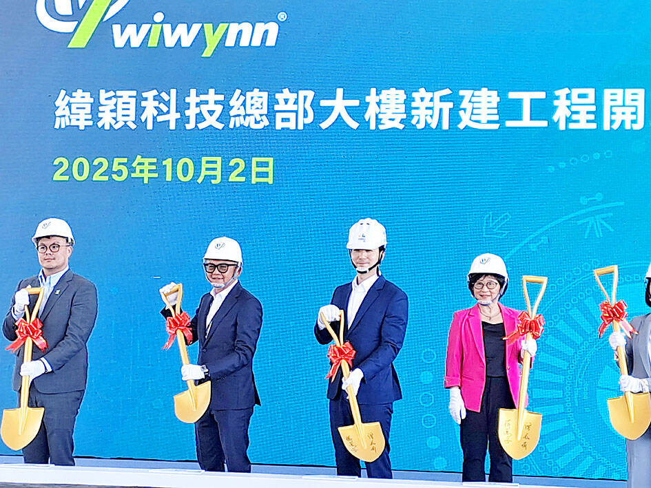Wiwynn yesterday held a groundbreaking ceremony for the construction of a new headquarters in Taipei’s Neihu District (內湖), with construction slated for completion in 2029.