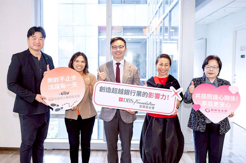 The DBS Foundation yesterday announced the launch of two flagship programs, “Silver Motion” and “Happier Caregiver, Healthier Seniors,” in partnership with CCILU Ltd, Hondao Senior Citizens’ Welfare Foundation and the Garden of Hope Foundation to help Taiwan face the challenges of a rapidly aging population.