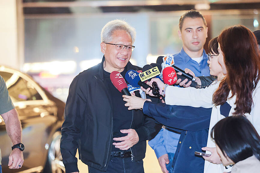No specific reason was given by the company for Huang’s stay in Taiwan, but Huang told reporters he visited Morris Chang (張忠謀), founder of contract chipmaker Taiwan Semiconductor Manufacturing Co (TSMC, 台積電), on Thursday and said the 94-year-old Chang was in “terrific” shape.