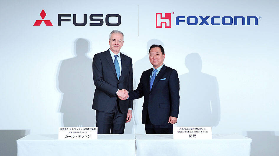 Hon Hai and MFTBC plan to cooperate on the development, production, supply chain management and sales of zero-emission buses via their subsidiaries, Foxtron Vehicle Technologies Co (鴻華先進) and Mitsubishi Fuso Bus Manufacturing Co respectively, they said.