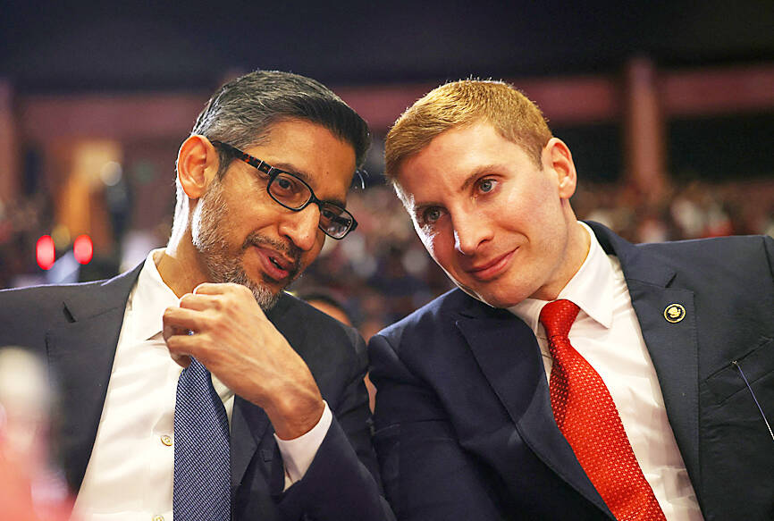 Nvidia Corp CEO Jensen Huang (黃仁勳) dropped out after early promotion; Microsoft cofounder Bill Gates withdrew later. Many attendees ran into trouble just getting into the grand Bharat Mandapam venue in New Delhi on Monday and logistics remained an ordeal all week. Mukesh Ambani, Asia’s richest man, had so much trouble getting through security that his speech — announcing the biggest deal of the India AI Impact Summit — was delayed.