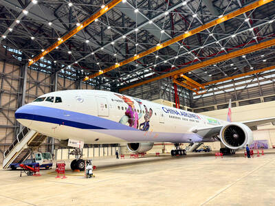 China Airlines Ltd (CAL, 中華航空) yesterday unveiled the country’s first Disney-themed aircraft, featuring a special livery and onboard items with characters from the upcoming animated film Zootopia 2.At the unveiling ceremony at Taiwan Taoyuan International Airport, CAL chairman Kao Shing-hwang (高星潢)