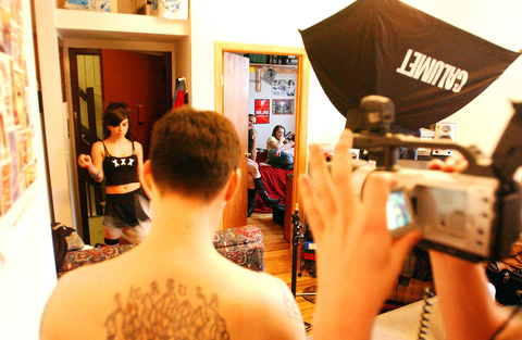 In a cramped apartment in Williamsburg, Brooklyn, members of a tiny film crew were busy transforming a cluttered living room into a makeshift set. All the furniture had been pushed against the walls, and the shades had been opened. Dirty dishes were piled in the kitchen sink. A thin, fit guy with tattoos who called himself Tommy Pistol was sitting naked behind a computer, videotaping himself with a hand-held camera and waiting for the real action to begin.