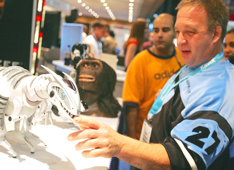 Of course, US$120 is not that cheap for a toy, and during the first few seconds of an initial encounter with Roboraptor -- which is selling in the UK this Christmas for up to ?80 (US$139) -- it is hard not to keep thinking about the price tag. The dinosaur certainly looks striking, its sleek head and bony tail supported by two huge clawed feet, and when you switch it on, it roars impressively. Use the remote control with too much beginner's gusto, though, and it is liable to hobble tentatively before tipping forward on to its chin.