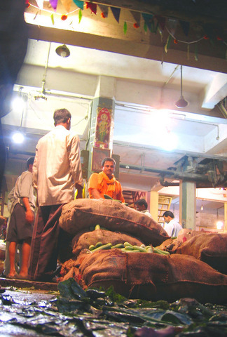 Lettuce and carrots lay in sludge. In the loading area, traders performed their morning ablutions, rinsing their mouths and spitting on the tarmac. Meters away, men unbuckled to urinate. Insects danced in the puddles.