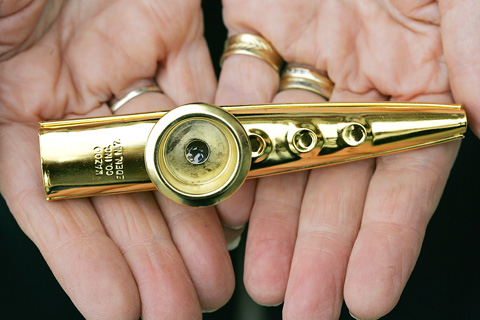 The finished product hasn’t changed, either. The palm-sized, submarine-shaped musical instrument still makes a tinny vibration when someone hums into it.