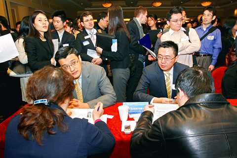 Perhaps it is not surprising then that the majority of the 27 financial institutions represented at the recruiting event, including Citic, the Bank of Shanghai (上海銀行), the Pudong Development Bank (浦東發展銀行) and the Shanghai Stock Exchange, all advertised for senior risk managers with three years to 10 years of experience with international companies in comparable positions.