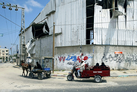 The auto-rickshaws, in which the front half of a motorcycle is welded onto a two-wheel trailer, are well-adapted to the four-year blockade that has transformed the local economy and daily life in the Palestinian territory.