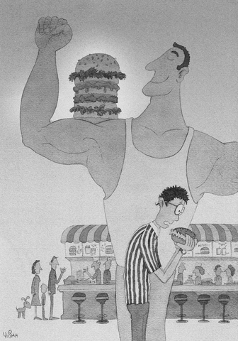 Earlier in the day at Burger King, it could have been the Meat'Normous Omelet Sandwich; over at Denny's, the Extreme Grand Slam Breakfast; at Hardee's, another US chain, the Monster Thickburger (300g slices of Angus beef, eight bacon strips and three cheese slices in a buttered bun). Hardee's calls the Thickburger "a monument to decadence," although they might equally have pointed out that it is a handy way for the average adult male to consume 70 percent of his recommended daily calorific intake in a single meal.