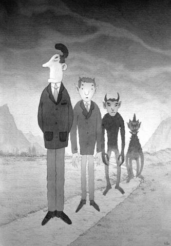 But her protective layer comes off to reveal stick-thin arms covered, from the wrists up, with a tattoo that winds its way to her chest and across her back, culminating, on her left shoulder, in the face of a Muromachi-era courtesan with breast exposed and a knife clenched between her teeth.