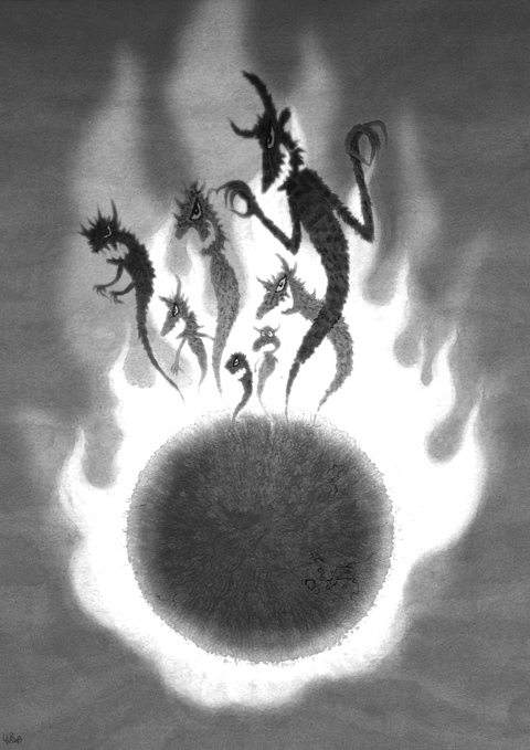 Looking up to make sure his mother was following along, he tapped the end of the drawing: “In 20 years, there’s no oxygen.”