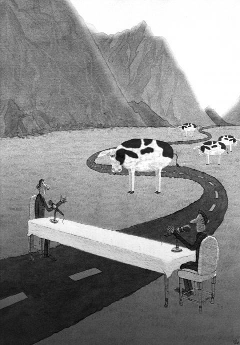Last week the 200 people who live and work in what is now called Bhaktivedanta Manor opened their £2.5 million (US$4 million) “protected cow” complex. It’s been called a “Hilton for cows” and a blueprint for sustainable dairy farming, but the 3,000m2 building that is the herd’s winter home, is a cross between a nursery, a workhouse and an old cows’ home. The cradle-to-grave philosophy of the Hindu group known for its bells and chants ensures that any bovine on the 40 hectare farm will not just be treated with respect while it lives, but will not be slaughtered if it is born male, if it falls ill or when it dries up — as happens in most commercial dairy farming.