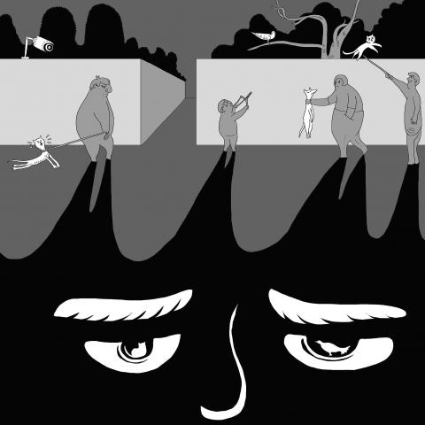 A grown woman’s face is sodden and red as Thousand Eyes plays out in her pupils: Endless baby chicks squashed into a grinder.