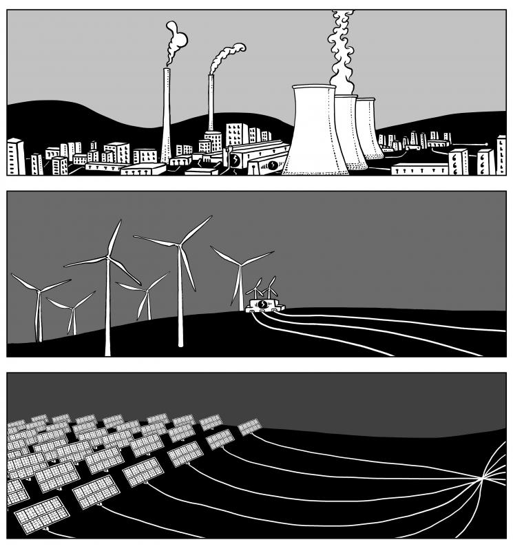 To turn wind and sunlight into power, first you need land. Lots of land, ideally unpopulated, where you can install hundreds of wind turbines and thousands of solar panels.