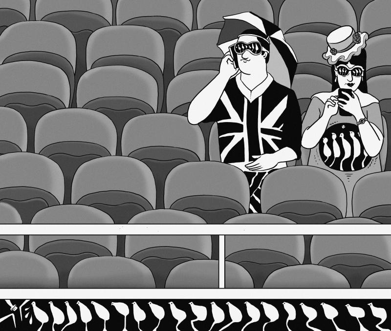 The Ralph Lauren uniforms, the green and purple flower boxes, the recycling bins, and the net-zero emissions pledges project an image of timeless tradition and hip modernity, but those rows of empty seats and the sight of long lines of punters reinforce a narrative that there is something elitist and a bit backward about it all.