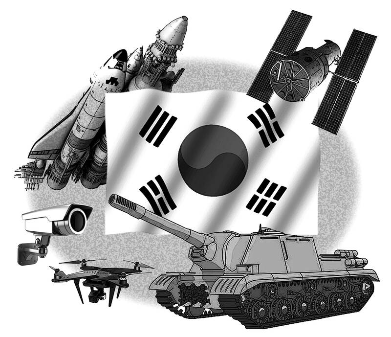 Russia’s invasion of Ukraine is adding momentum to global demand, with neighbors bolstering their defenses as a counter to Moscow’s aggressive stance. That is helping South Korean suppliers, including Hanwha Aerospace Co, which makes land-based artillery for a growing list of European customers. Escalating tensions closer to home — with North Korea and in the Taiwan Strait — as well as conflicts such as Israel’s war in Gaza, drove global military spending 9 percent higher last year to US$2.2 trillion.