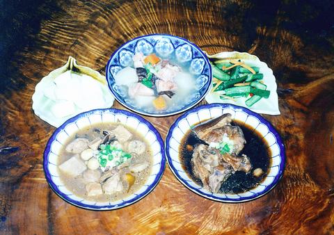 Another offering is "Buddha Jumps the Wall" (佛跳牆), a vegetarian dish with imitation meat, taro and lotus seeds. Each set meal comes with soup, rice and two side dishes.
