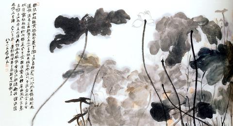 Some mainlander Taiwanese artists, however, reached beyond tradition and brought new elements to their rice paper scrolls. Foremost among these exhibited at the show is Chang Dai-chien, who integrated abstract painting to create his own style of "splash ink" painting, as seen in the piece Lily Pond.