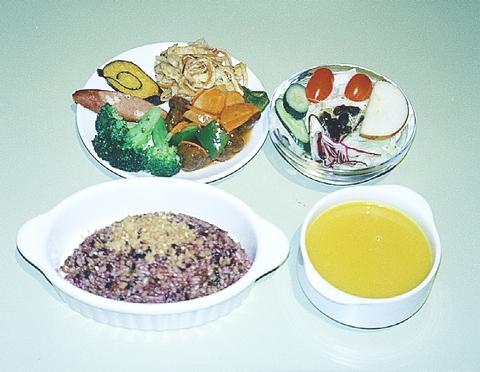 Chen emphasizes, however, that E2 is not strictly an organic food restaurant. Along with the organic rice and grains and vegetables are nine types of coffee and 10 types of herbal teas. For those who like a light and fragrant meal, try the cereal rice and vegetables Set. The rice bowl is furnished with a combination of mixed grains and different kinds of rice such as black sticky rice (黑糯米). Those who just can't do without the taste of meat should try the fish steak in Japanese style. The meat imitations are made from tofu and taste wonderful and don't have the fat. For extra pep, try the "miracle energy soup," a staple of most organic restaurants. It's a bit bitter, but is extremely healthy, and purports to restore one's energy. Chen says it is made of various kinds of fibers from vegetables, fruits and nuts. He also recommends finishing the drink within 15 minutes to maintain the freshness of the juice.