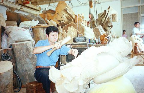 "I started woodcarving over 30 years ago and was soon getting orders from Thailand and Japan. My father was a woodcarver and so was his, but neither of them had any opportunity to export their works. I can't really explain why there was a sudden interest in our woodcarvings in the 1970s, but I guess it had more to do with the art dealers in Taipei than with us. After all, people have been carving sculptures out of camphor here for too many years to remember," explains Hsiao while meticulously shaping the eyeballs on a half-finished carving of a pot-bellied Buddha. "Since then the number of pieces I make for export has increased so much that I'm now getting orders from the US, Korea and even Europe. And then there's the local market. I don't think I've been busier."