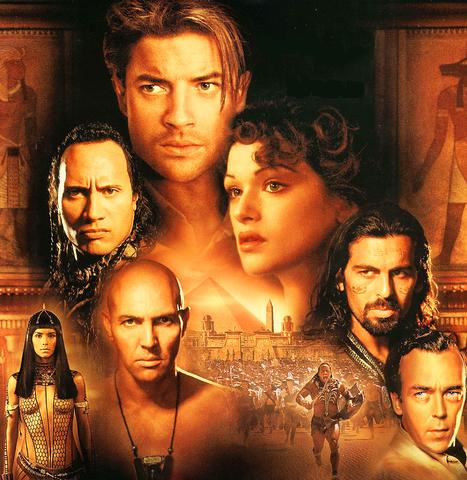 Starring: Brendan Fraser (Rick O'Connell), Rachel Weisz, (Evie/Princess Nefertiri), John Hannah (Jonathan Carnahan), Arbold Vosloo (High Priest Imhotep), Oded Fehr (Ardeth Bay), Patricia Velazquiez (Meela/Anck Su Namun), Freddie Boath (Alex O'connell), Dwayne Johnson (The Scorpion King).