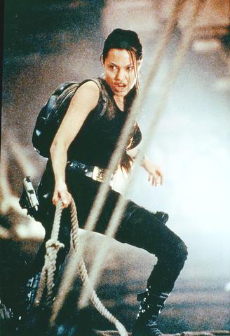 Angelina Jolie looks uncannily like Lara Croft of the computer game Tomb Raider that forms the basis for the upcoming film Lara Croft: Tomb Raider. Jolie is actually more attractive than the virtual reality fighter, with her long braids, tight black sleeveless top, slim arms and legs with guns strapped to the hips, the small waist and, as everyone has surely noticed on the trailer, the massive bust.