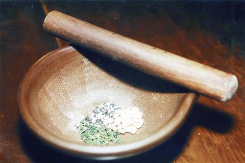 Lei cha was later used in traditional tea ceremonies to welcome guests. "If you visit a Hakka house and they let you pound your own lei cha, that means they respect you," said Chiu De-chih (邱得治) or Ah-chih (阿治), co-owner of the restaurant.