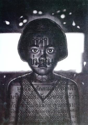 The girl's sad and helpless stare expresses the silent accusation that give a voice to Vara's stand on Thailand's rampant violence, which, according to Vara, the Thai media luridly portrays with relish. "My objective is to create artistic media that can reflect the pain of the victims. So everyone ... will understand the problems and help make this world a better place," he said.