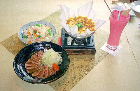 Moderately priced and too numerous to list in full, some of the restaurants' most popular dishes include deep-fried chicken slices with lime sauce (檸檬雞片) (NT$300), stir-fried sirloin slices on a pottery plate (陶盤牛肉) (NT$320), simmered sea-bass belly with soy sauce (燜燒魚肚膛) (NT$360), spicy bean curd in a paper pot (人間豆腐) (NT$250) and the interestingly named Buddha's meal (羅漢齋) (NT$280).