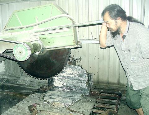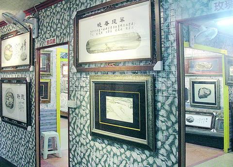 Yu said he learned how to find the stones from his father who was the first person in the village to start the trade. He proudly pointed out that the other day he saw KMT party chairman Lien Chan (連戰) sitting by his desk on TV. One rose stone stood out rather conspicuously on Lien's desk. It was a gift from Yu to Lien when the then-vice-president visited his family right after the Ophelia disaster.