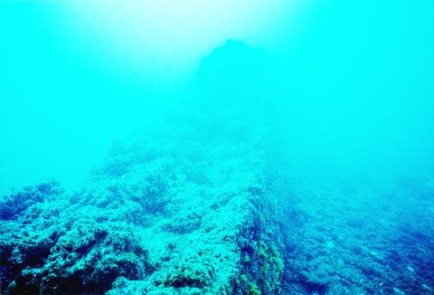 Regardless of the stir it has caused, the recent find is not the first such discovery to take place in Taiwan's territorial waters. In 1982, a Japanese research team discovered a 100m-long cross-like structure in waters off of Penghu's Hujing Island (虎井島). Since then three other underwater wall-like structures have been pinpointed by independent underwater survey teams.