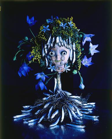 If we are to believe the title of the current exhibition of Kon's work at the Taiwan International Visual Arts Center, Images for the New Century, it's an unsettling century we have ahead of us. Kon's arrangements seek to provoke an awareness of death in the very things that we associate with life and living -- a girl's dress looks to be of a lively polkadotted pattern until a closer look reveals that the dots are actually hundreds of small burn holes; a sneaker photographed in black and white could pass for a Converse advertisement were it not for the fact that it's made of cuttlefish; a fish-scale brassiere suggestively draped over the side of a chair has all the sex appeal of ... well, a fish.