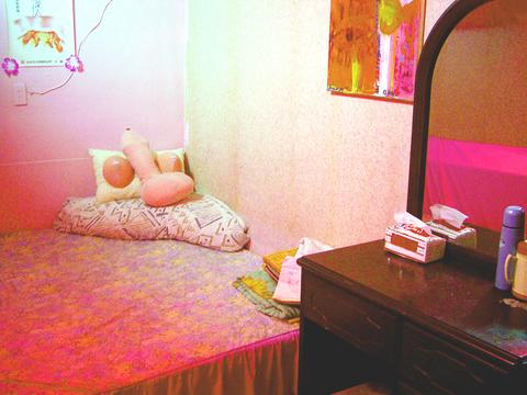 A dozen old photos of the ladies, which customers used to choose their girls, still hang on the wall at the entrance to Chunfenglou. The wall is now decorated with a pink feather boa and several sex toys, and on the floor are two cushions that look like sex organs, and another one in the shape of a pair of lips.